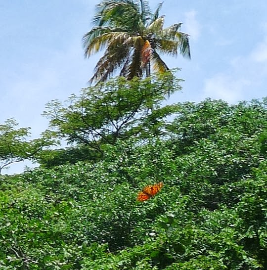 Thinking my beach walk experience was over, suddenly two butterflies fluttered by. There was still more beauty to see! As I reached for my camera, I was dreading that these butterflies would vanish in the bush but I was able to capture them on film. What a relief! What a treat! Then as I moved on, I found a big blue-gray Puerto Rican lizard gliding in the brush. My camera was ready but not being a ballerina myself, every small step seemed to only set him moving further and further away, but he stopped and I zoomed in! Snap! I got him! It may not be the best picture, but I got him! Can